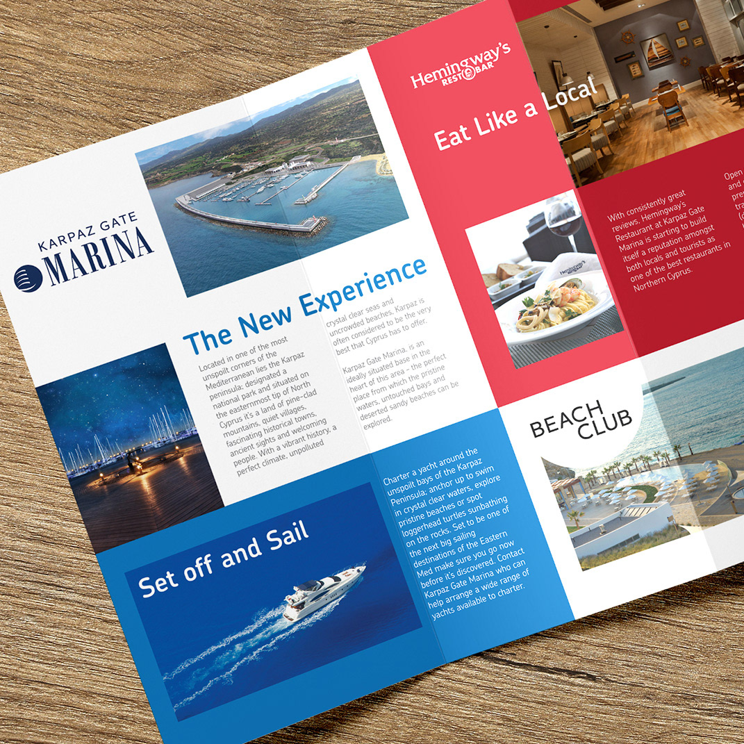 Logo renovation and printed materials for Karpaz Gate Marina.